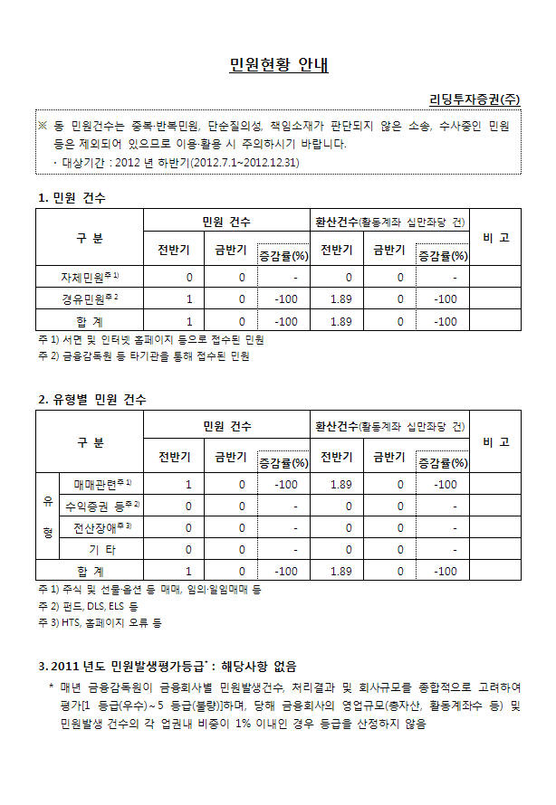 민원건수 현황 안내 (2012년 하반기)
