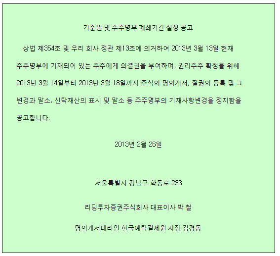 기준일 및 주주명부 폐쇄기간 설정 공고