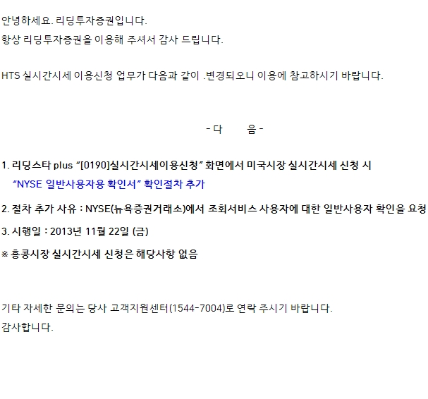 미국 실시간시세 이용신청 시 NYSE일반사용자 확인절차 추가 안내