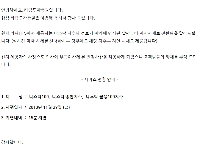 미국 나스닥 지수 시세제공 변경사항 안내