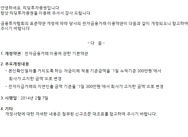 표준약관 개정 안내 (전자금융거래 이용에 관한 기본약관)