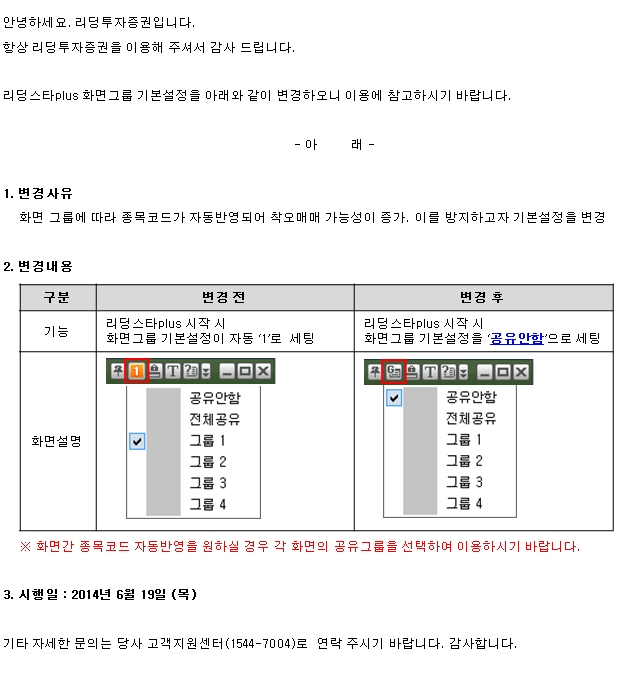 리딩스타plus 화면 그룹 설정기능 변경 안내