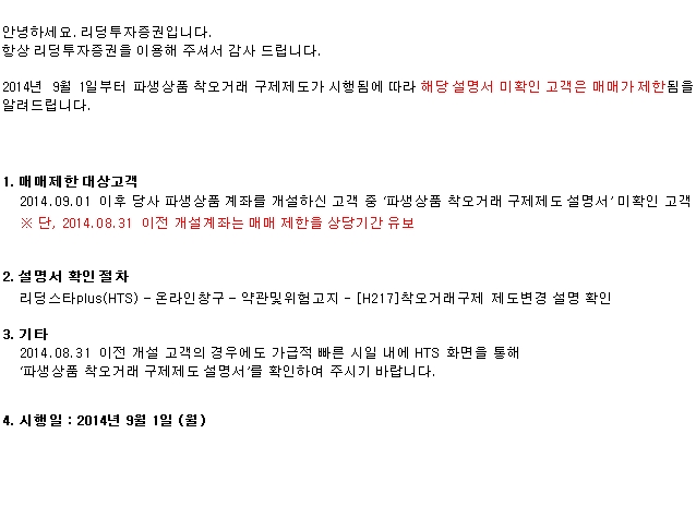 파생상품 착오거래 구제제도 설명서 미확인 고객 매매제한 안내