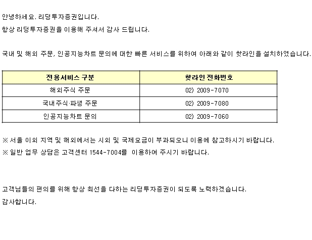 국내/해외 주문, 인공지능차트 핫라인 전화번호 안내