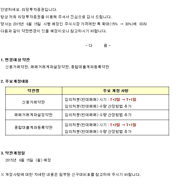 가격제한폭 확대에 따른 약관변경 안내